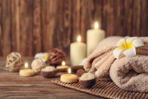 Lighting is another one of the key elements to creating a truly relaxing spa in your home. After all, light can create a different atmosphere depending on the type you use. Our recommendation for your at-home spa is soft, dim lighting. For example, you could just use candles and candle holders as your only light source.