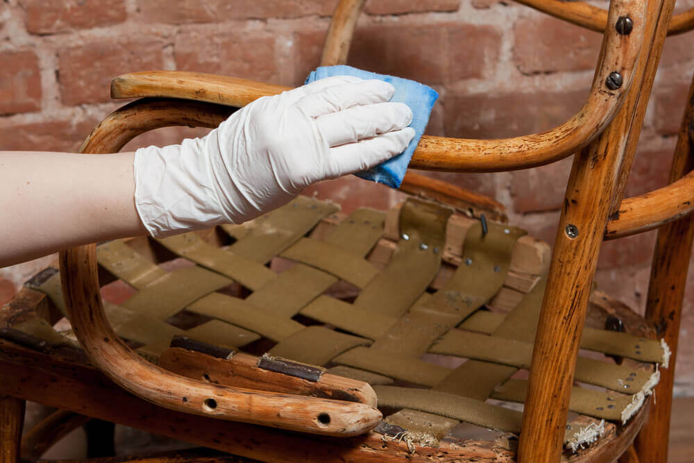 The best part about this technique is that it doesn’t produce the typical sawdust that results from sanding and it also doesn’t require an aggressive approach. You’ll need white vinegar, water, a cotton cloth, and paint. First, paint the surface that you want to strip in the color of your choice. Let it dry. Then, mix equal parts of water and vinegar and dip the cloth. Use the cloth to rub off the painted surface and leave parts of the wood exposed.