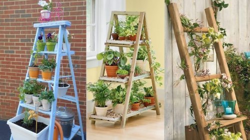 If you’re looking for a good shelf for your plants, remember that you can reuse a real ladder to do the job with no problem, regardless of the material. But you can also think about making the shelf yourself: you won’t need too many materials and it won’t take that much time either. If you decide to get crafty, you have two main options:
