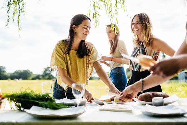 Combine your plates and glasses, make them match. If there are children, keep special plates for them. Whenever possible, don’t use disposable plates, but if you need too, find paper plates and cups with fun designs.